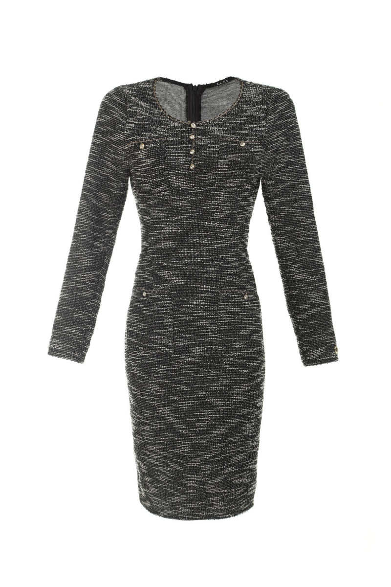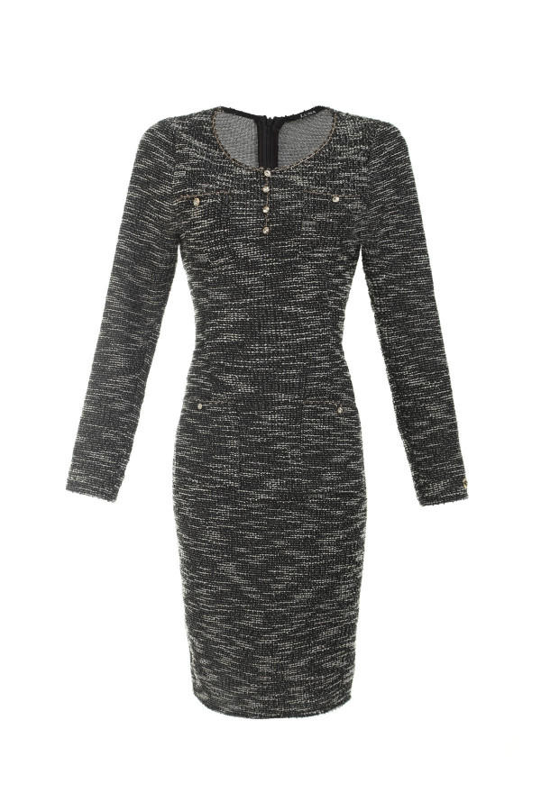 Crno-bela uska haljina protkana lameom odličan je izbor za svakodnevne outfite.