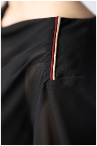 Elegantna, usko krojena haljina u crnoj nijansi sa V-izrezom, odvojivim lepršavim rukav...