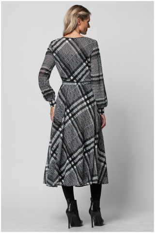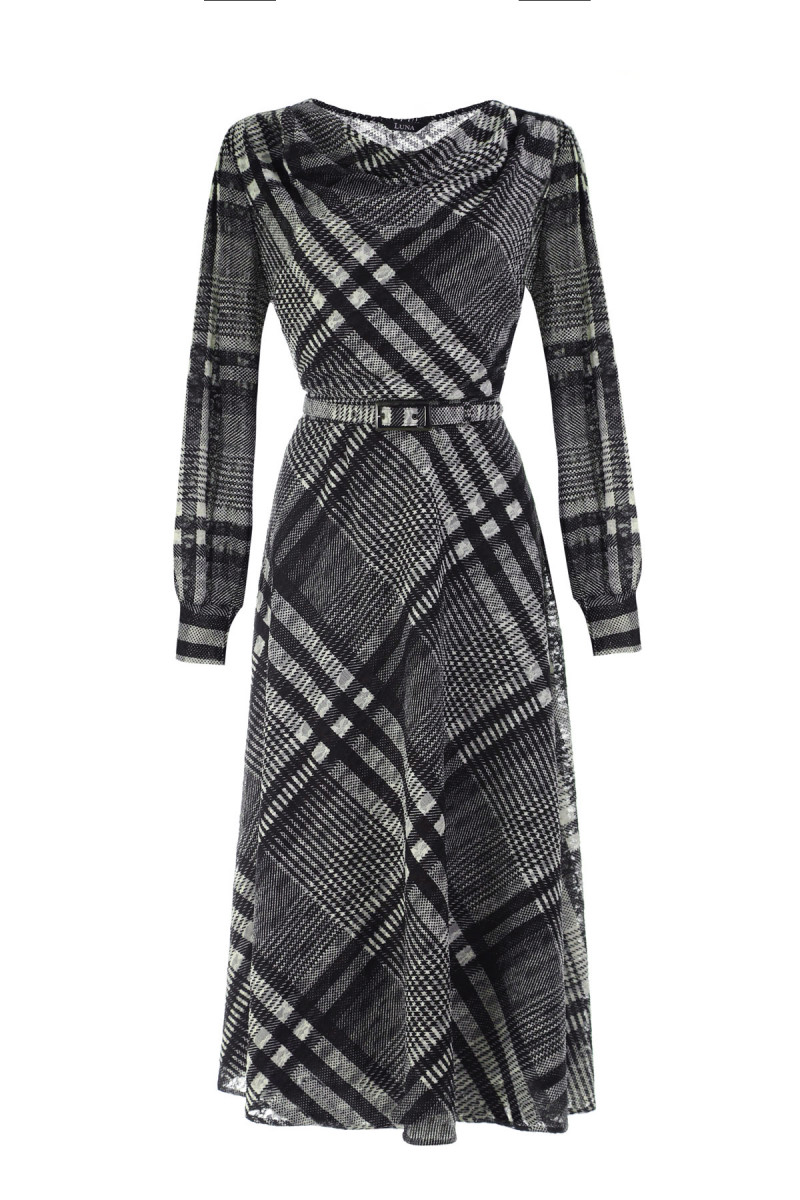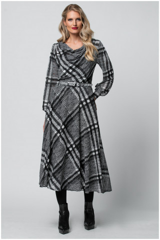 Duga dezenirana haljina sa kaišem. Nabori na dekolteu dodaju notu ženstvenosti. Možete je nositi u raznim prilikama, kako na poslovnim sastancima, tako i tokom večernjih izlazaka.