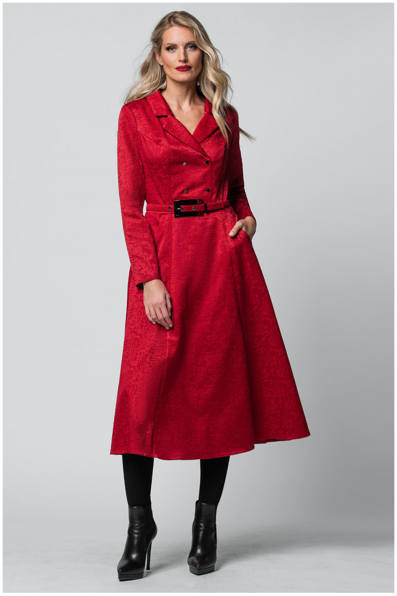 Crvena haljina sa dugim rukavima je model koji Vam je neophodan ove sezone. Kaiš sa ukrasnom šnalom naglašava Vaš struk. Viskozna postava, kao i elastin u sastavu čine je komfornom za nošenje.