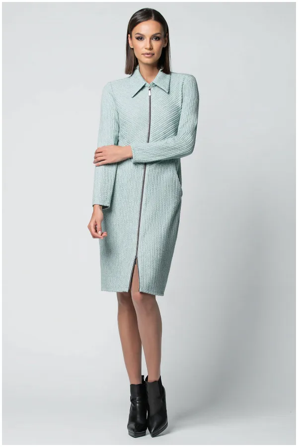Mint haljina sa dvopoteznim rajsferšlusom uz čiju pomoć možete podešavati dubinu dekoltea i šlica. Kroj je uzak i savršeno prati liniju tela. Sa bočne strane se nalazi dugmad čijim otkopčavanjem kreirate šlic.