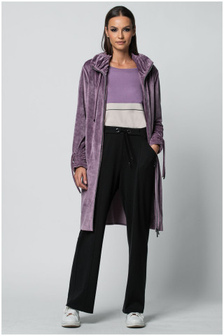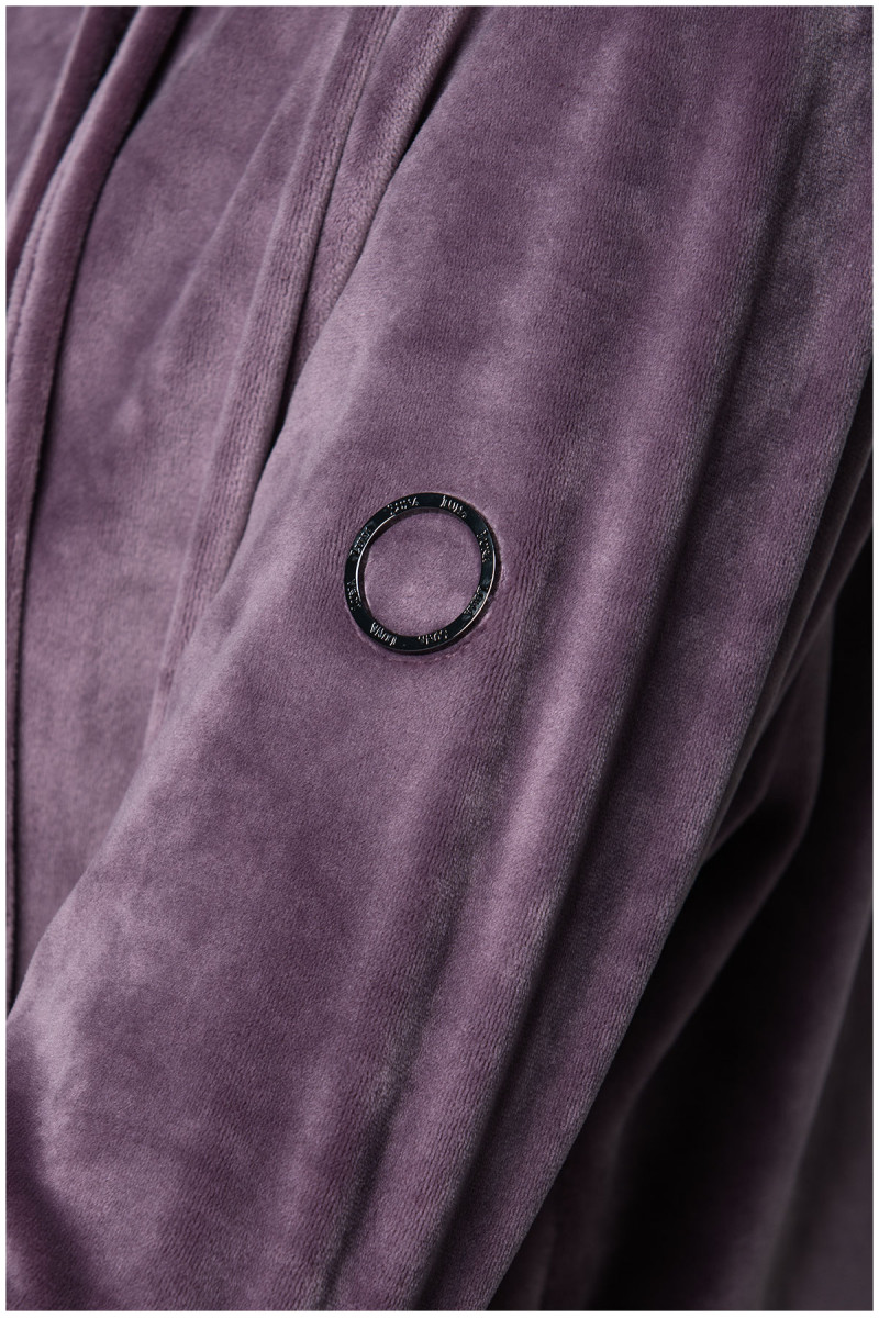 Ljubičasta plišana haljina sa dvopoteznim rajsferšlusom dužine je do kolena. Funkcionalnost joj povećava i mogućnost trasnformacje u komfornu dugu jaknu.