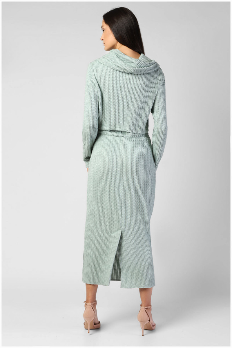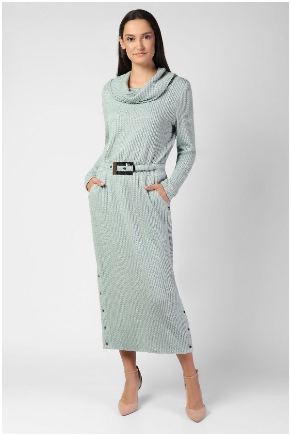 Haljina od viskozne pletenine sa kaišem koji ističe struk. Gornji deo je širi pa će Vam haljina biti vrlo komforna, dok je donji deo sužen i prati liniju tela, dodajući notu ženstvenosti.