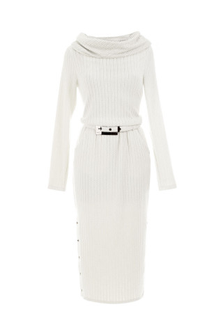 Haljina od viskozne pletenine sa kaišem koji ističe struk. Gornji deo je širi pa će Vam haljina biti vrlo komforna, dok je donji deo sužen i prati liniju tela, dodajući notu ženstvenosti.