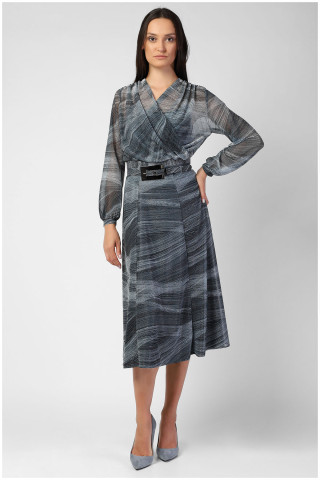 Elegantna haljina sa dekolteom na preklop protkana lame vlaknima odlična je za posebne trenutke. Viskozna postava čini je prijatnom za nošenje, a elastični pojas savršeno se prilagođava Vašem struku.