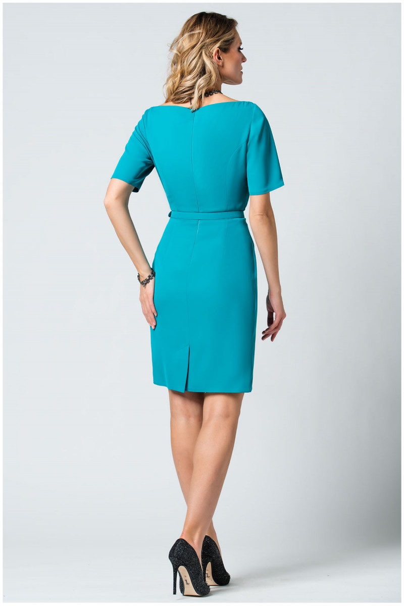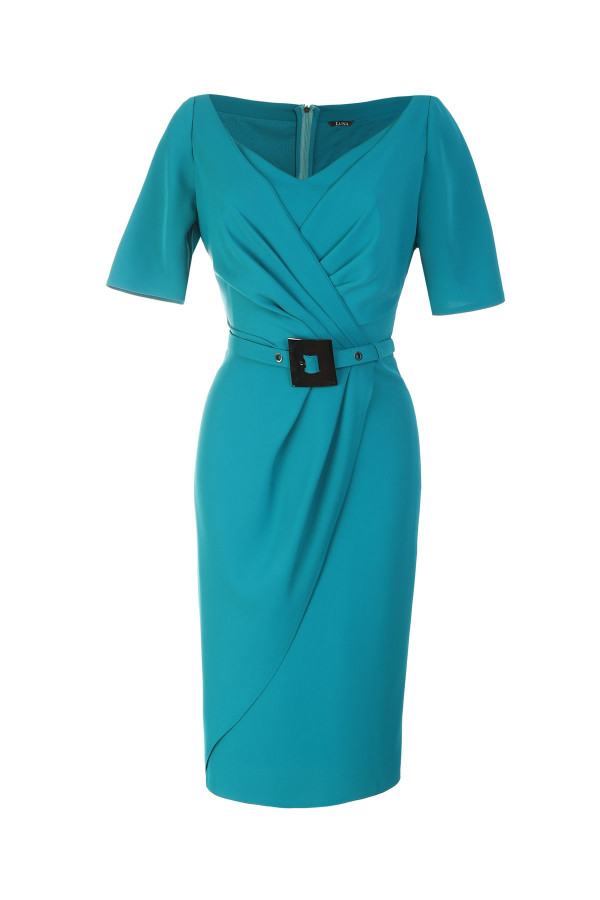 Uska haljina ravnog kroja prati liniju tela. Oplemenja je paspulima u predelu dekoltea, dok kaiš dodatno naglašava struk. Savršeno se kombinuje sa cipelama i nakitom iz Luna asortimana.