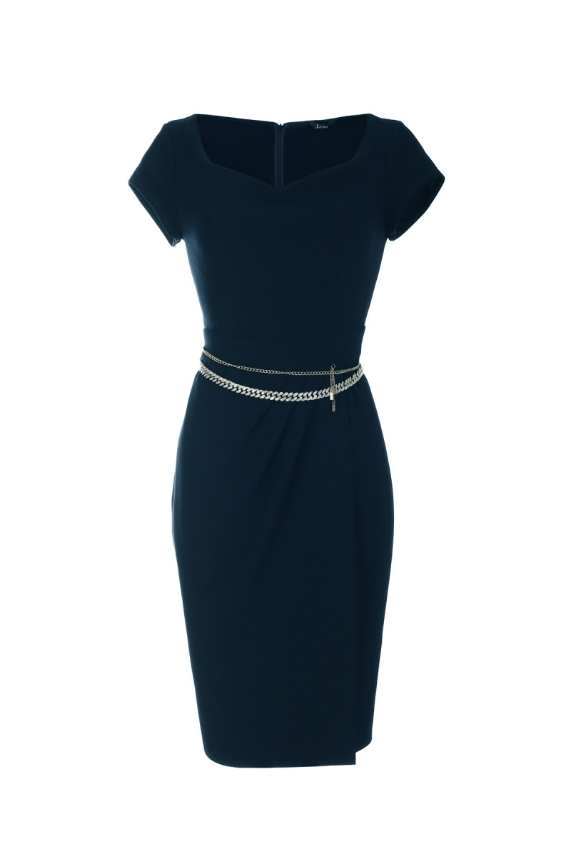 Svedena uska haljina sa kratkim rukavima. Oplemenjena je ukrasnim lančićem u predelu struka, koji se po potrebi može skinuti. Savršeno se kombinuje sa nakitom i torbicom iz Luna asortimana.