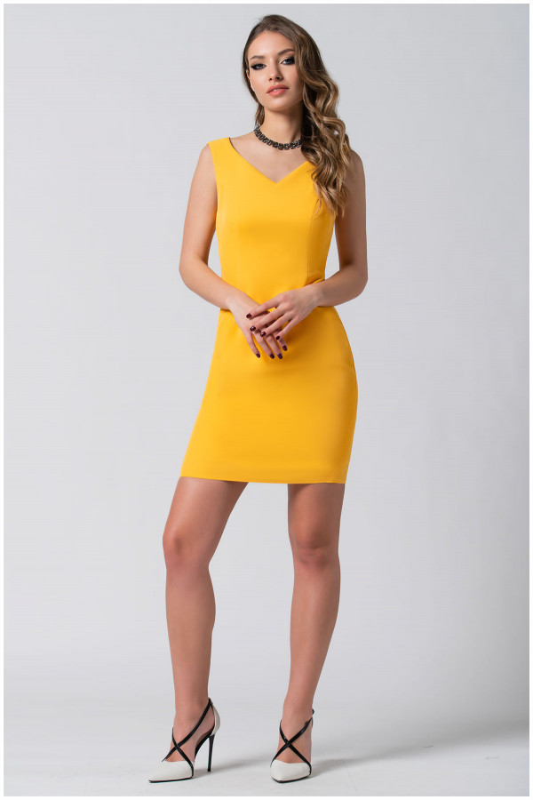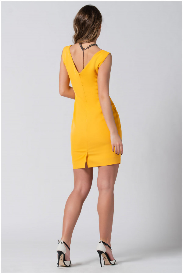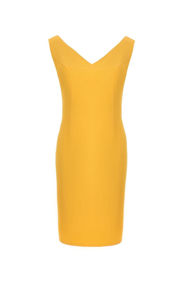 Klasična uska haljina žute boje koja savršeno prati liniju Vašeg tela. Kombinujte je sa strukiranim sakoom kratkih rukava iz iste kolekcije i postignite efektan outfit.