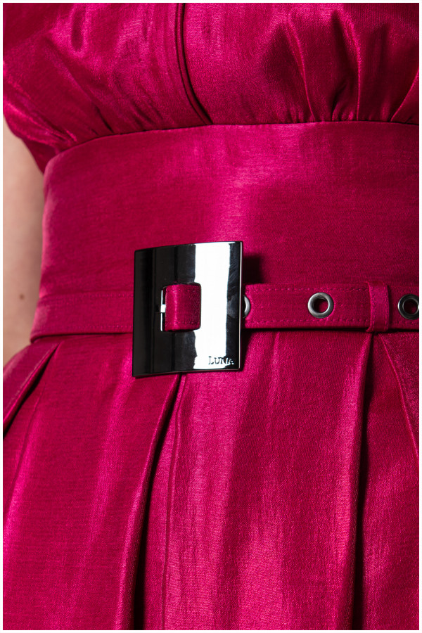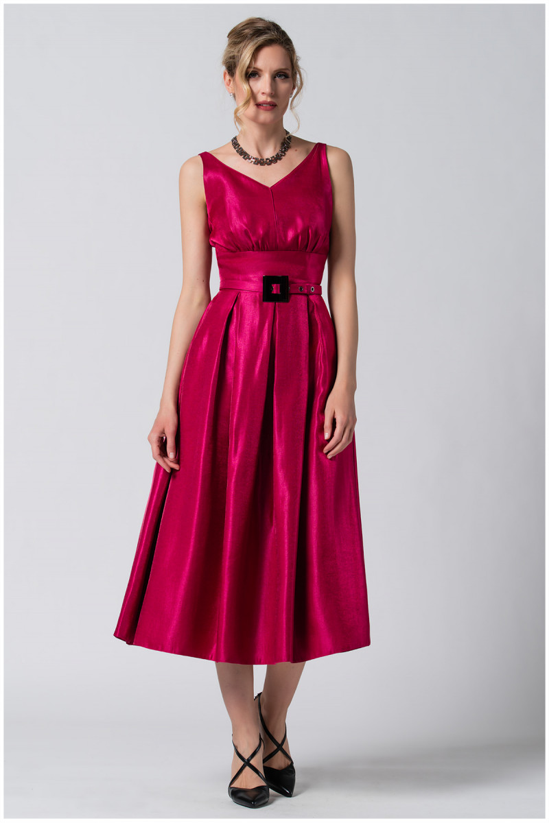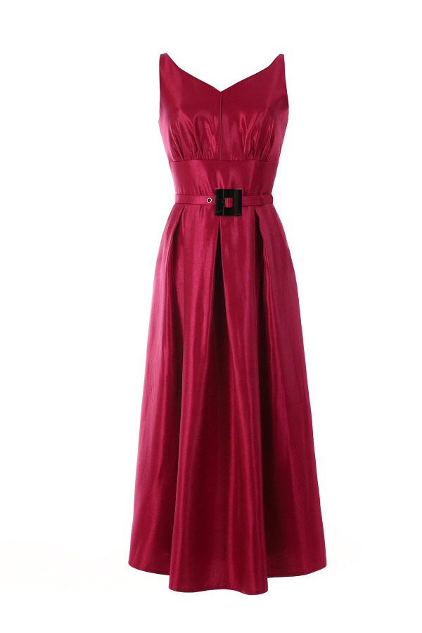 Midi haljina A kroja bez rukava. Savršeno se kombinuje sa cipelama i nakitom iz Luna asortimana. Ukrasna šnala u formi kaiša dodatno naglašava struk a viskozna postava čini je udobnom i prijatnom za nošenje.