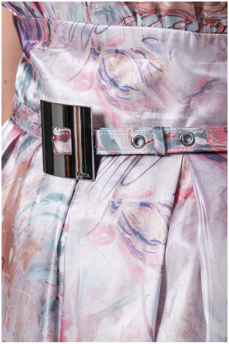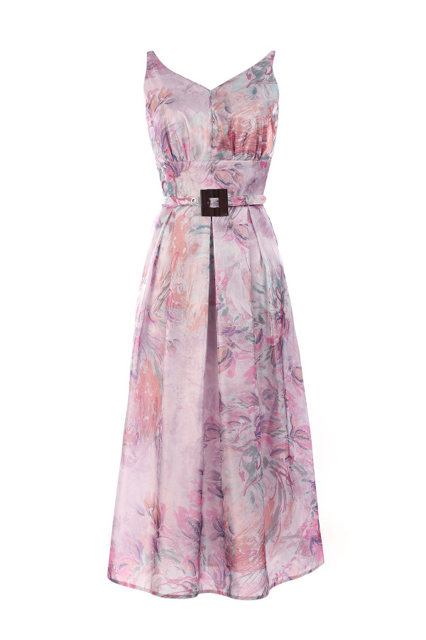 Midi haljina A kroja cvetnog dezena. Savršeno se kombinuje sa cipelama i nakitom iz Luna asortimana. Ukrasna šnala u formi kaiša dodatno naglašava struk a viskozna postava čini je udobnom i prijatnom za nošenje.