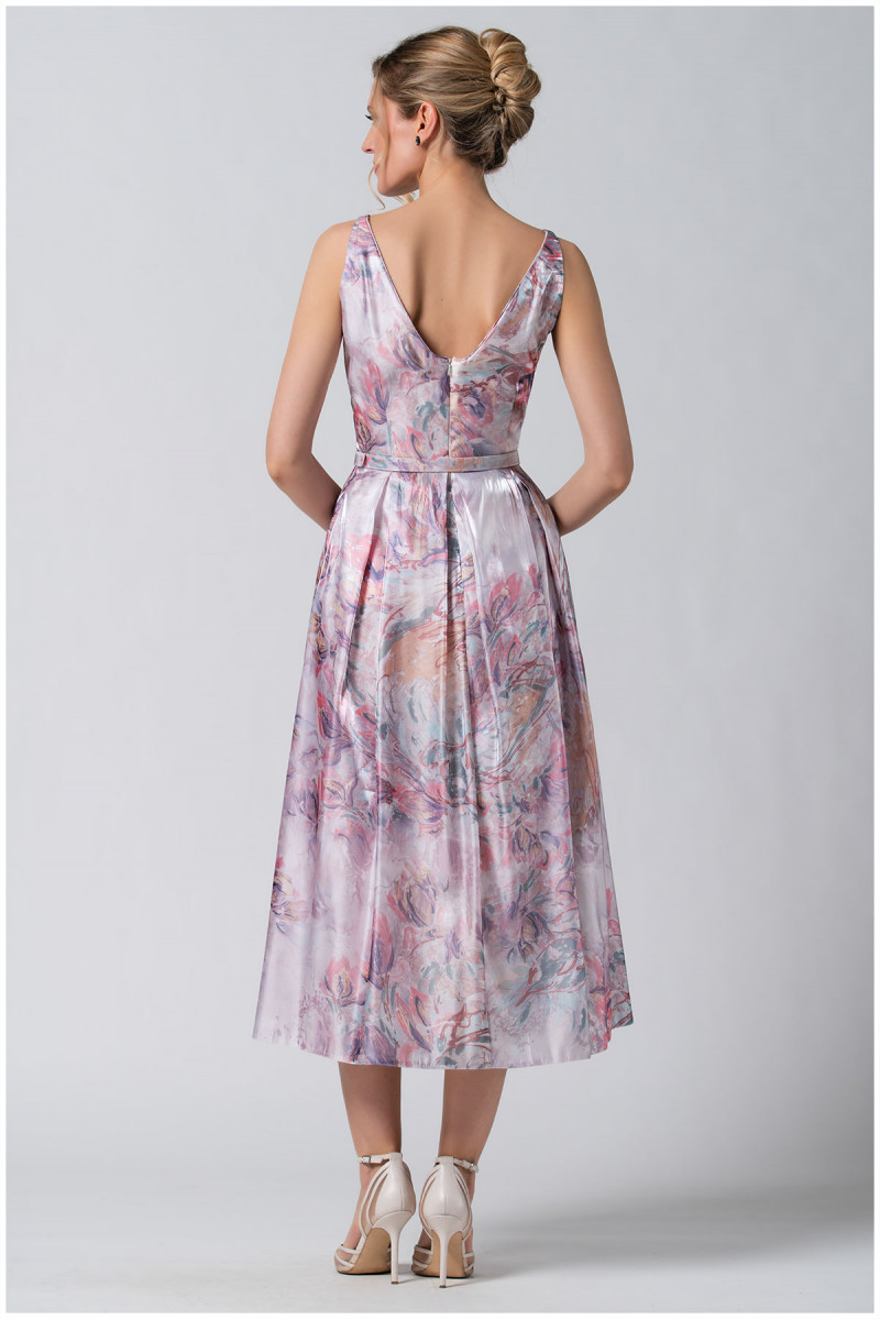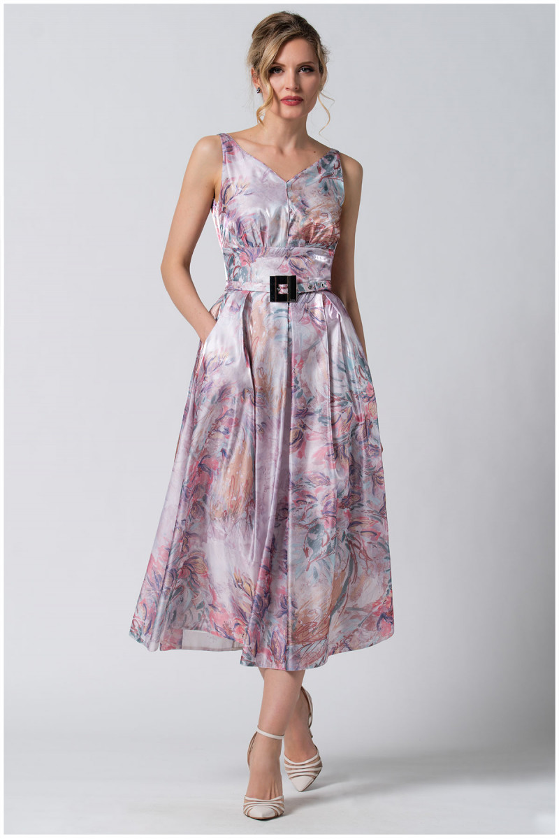 Midi haljina A kroja cvetnog dezena, savršeno se kombinuje sa cipelama i nakitom iz Luna asortimana.