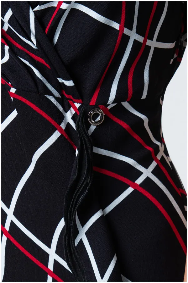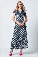 Ženstvena duga haljina sa karnerima apstraktnog dezena. Viskozna postava doprinosi komfornosti. Kroj savršeno pristaje svim tipovima građe i savršeno prikriva nedostatke. Uz efektan nakit i Luna cipele dobićete savršen outfit za svaku priliku.