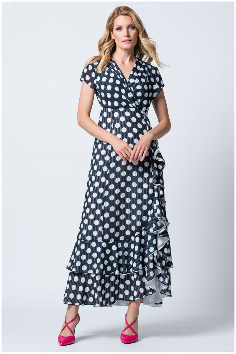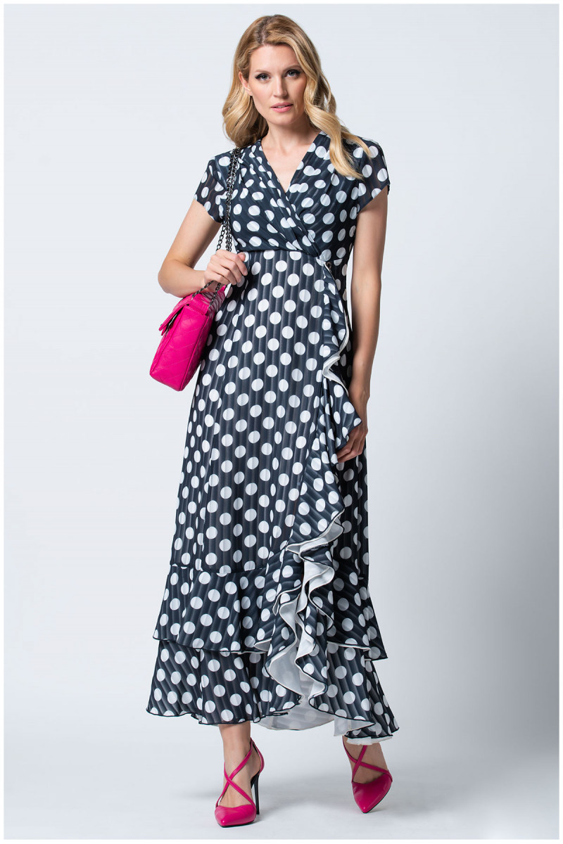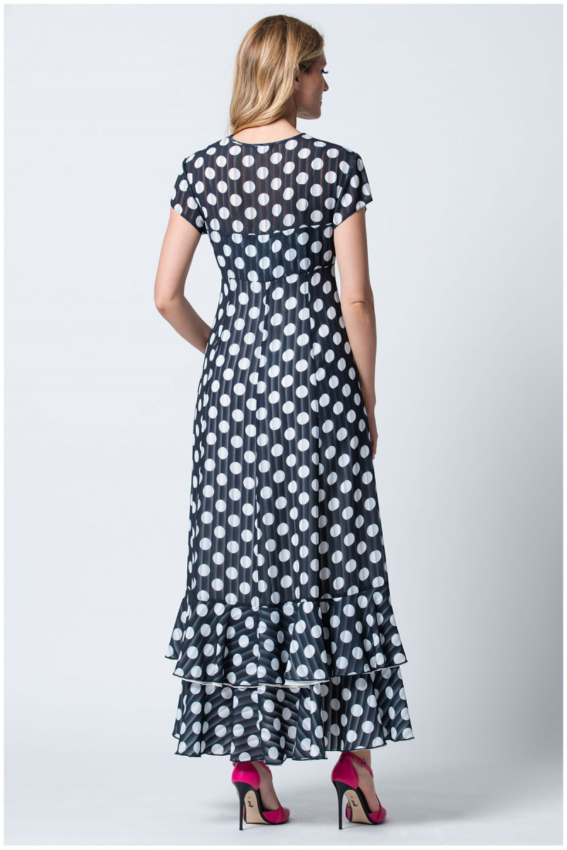 Ženstvena duga haljina na tufne oplemenjena karnerima. Dodajte efektan nakit i Luna cipele kako biste upotpunili svoju odevnu kombinaciju.