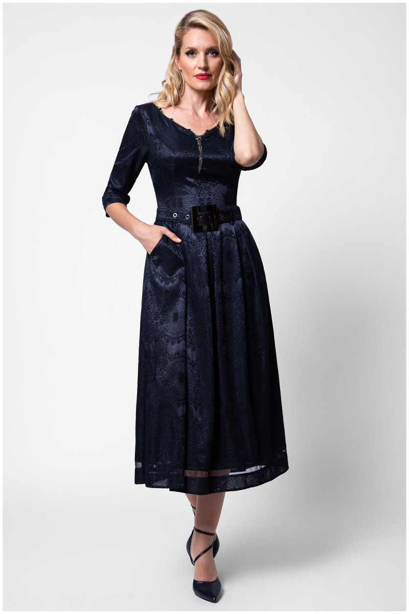 Duga haljina 3/4 rukava romantičnog dezena ukrašena čipkom idealna je za posebne prilike.