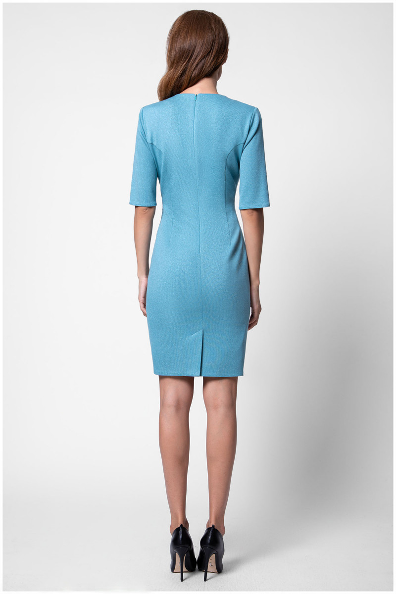Uska haljina 3/4 rukava protkana lameom. Uzak kroj pomno prati liniju tela ističući Vašu ženstvenost. Dodajte nakit i torbicu i spremni ste za važan događaj.