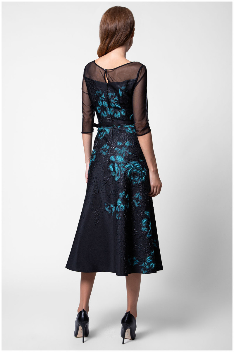 Haljina A kroja floralnog dezena sa V izrezom i 3/4 transparentnim rukavima. Zahvaljujući kaišu možete istaći struk ali ga po potrebi možete i skinuti. Viskozna postava čini je komfornom za nošenje.