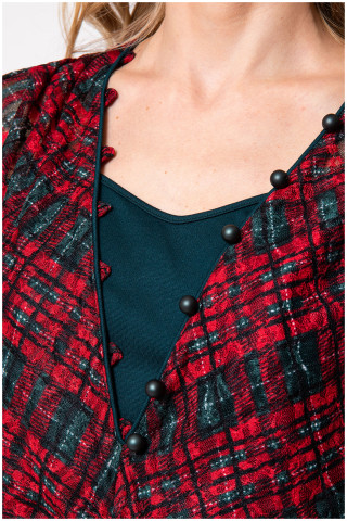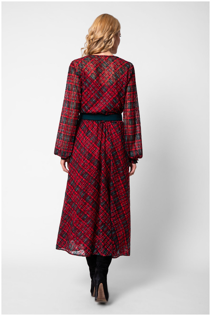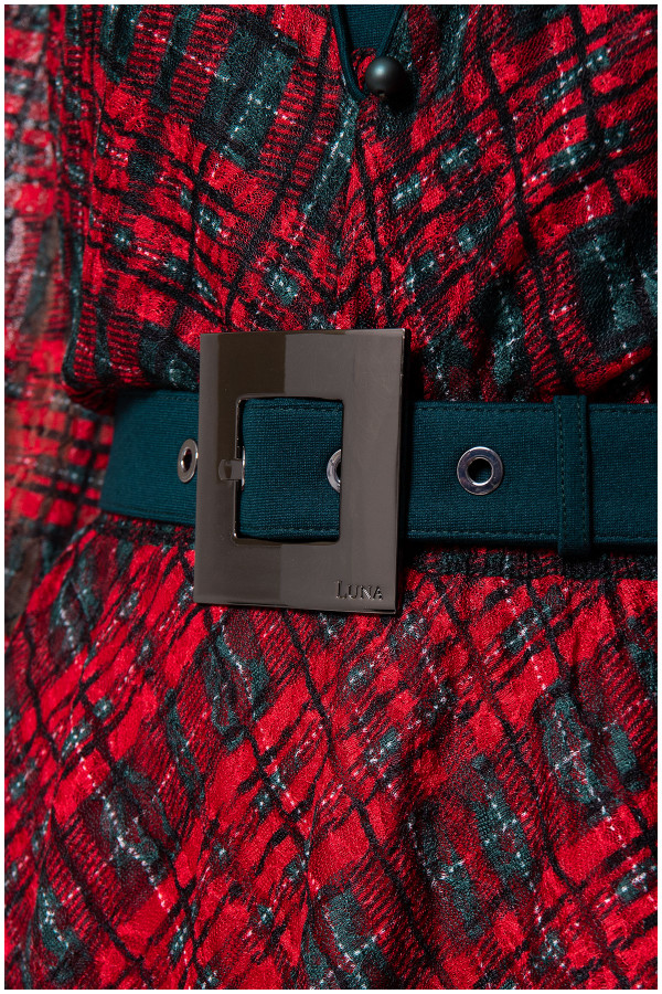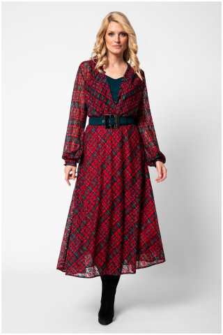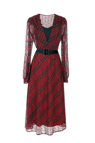 Duga haljina kariranog dezena odlično pristaje svim tipovima građe. Kaiš sa ukrasnom šnalom naglašava Vaš struk. Visok procenat elastina u sastavu čini ovaj model veoma udobnim za nošenje.