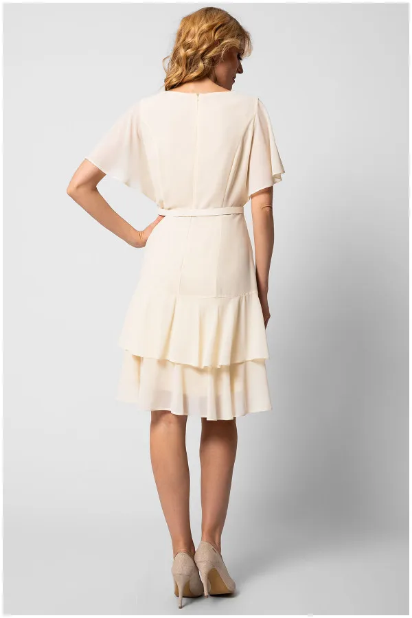 Kratka lepršava haljina sa dekolteom na preklop odlična je za posebne trenutke.