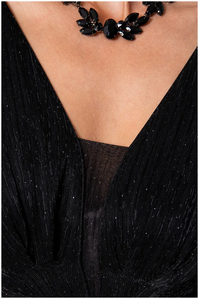 Elegantna duga haljina oplemenjena naborima u predelu biste i pojasa sa prednje strane. Kratki lepršavi rukavi dodatno dodaju notu prefinjenosti. Dodajte nakit i elegantnu torbu kako biste upotpunili svoj outfit.