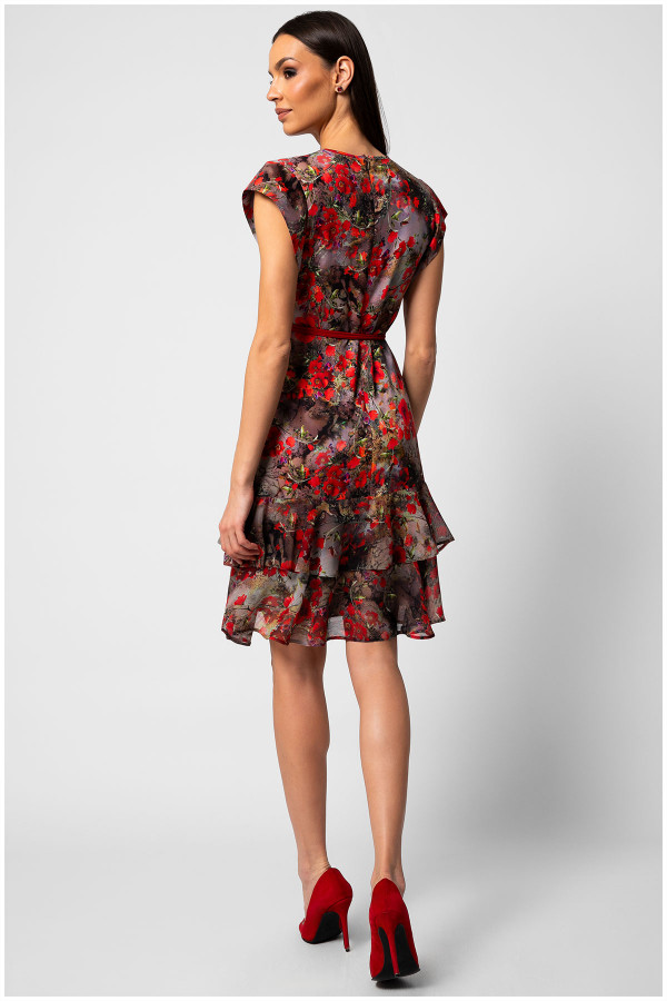Ženstvena kratka haljina sa karnerima floralnog dezena.