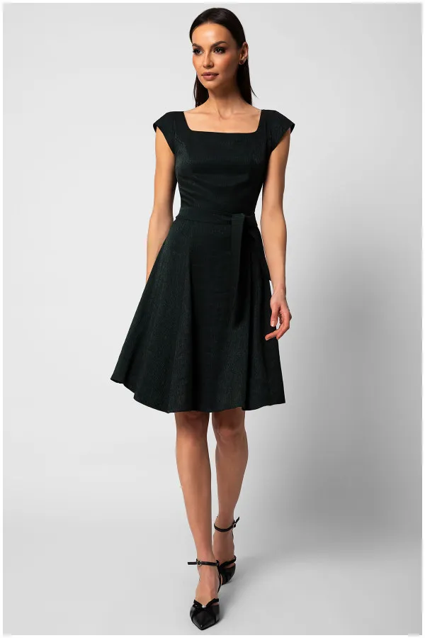 Elegantna tamno-zelena haljina sa suptilnim sjajem i ženstvenom siluetom za svečane pri...