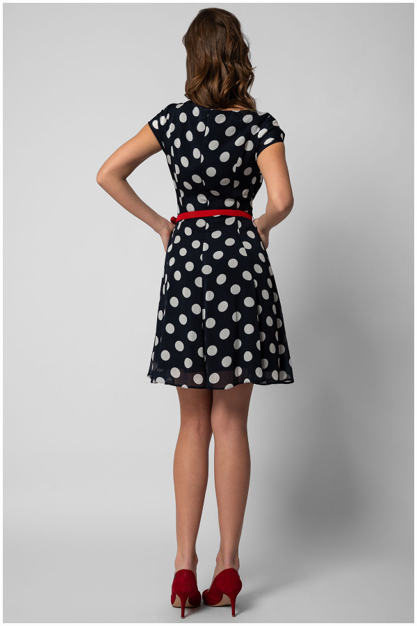 Kratka haljina na tufne idealna je za letnje dane. Kroj prati liniju tela dok se u donjem delu blago širi pružajući slobodu pokreta. Kaiš dodatno ističe struk dok viskozni materijal doprinosi komfornosti. Uz efektan nakit i Luna cipele dobićete savršen outfit za svaku priliku.