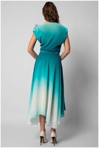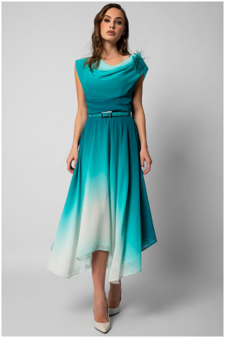 Raskošna midi haljina bez rukava u ombre tirkiznoj boji.