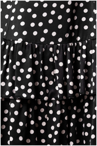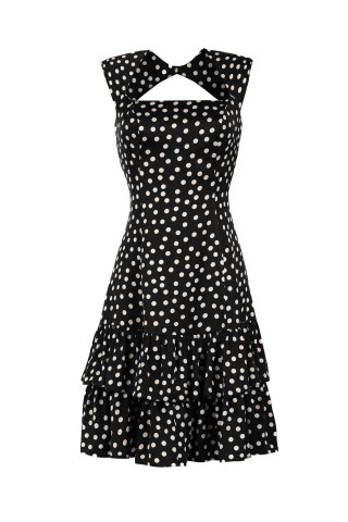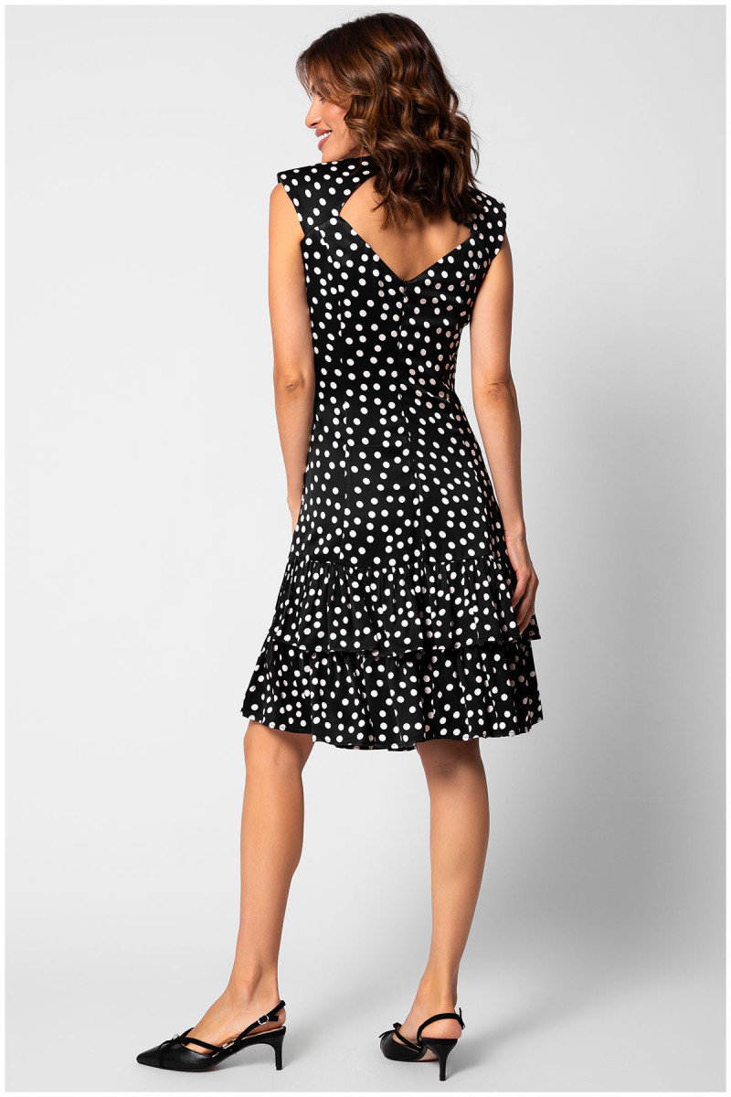 Kratka haljina na tufne sa karnerima idealna je za letnje dane. Kroj prati liniju tela dok se u donjem delu blago širi pružajući slobodu pokreta. Viskoza u svom sastavu čini ovaj model izuzetno udobnim za nošenje. Uz efektan nakit i Luna cipele dobićete savršen outfit za svaku priliku.