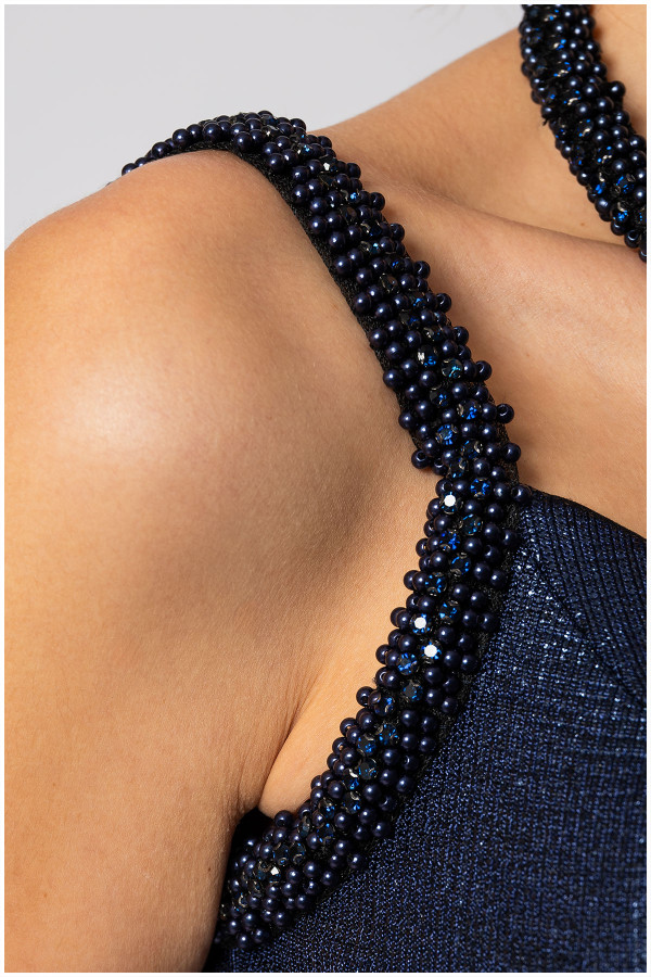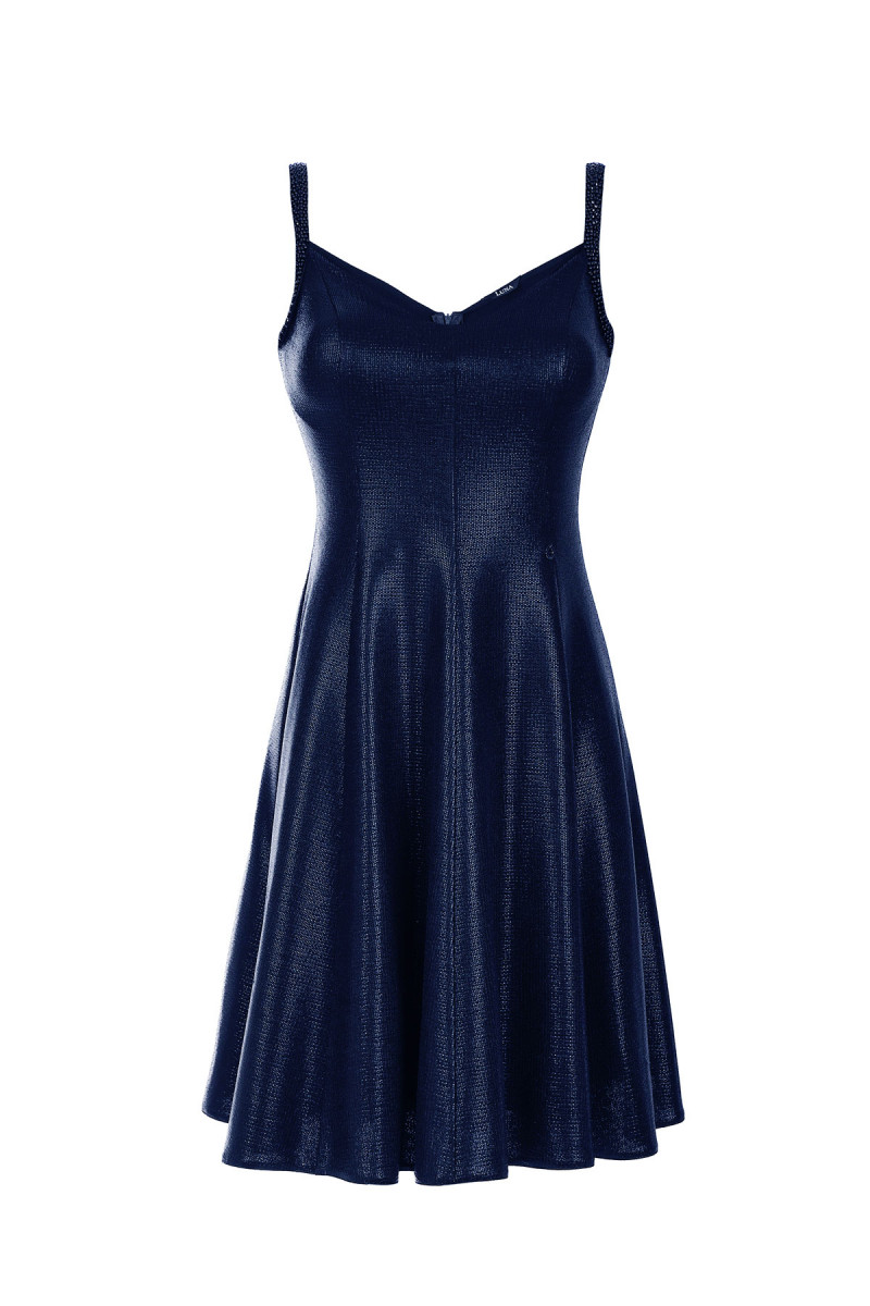 Ženstvena kratka haljina na bretele. Kroj prati liniju tela dok se u donjem delu blago širi pružajući slobodu pokreta. Dodajte nakit, cipele i elegantnu torbu iz Luna asortimana kako biste upotpunili svoj outfit.