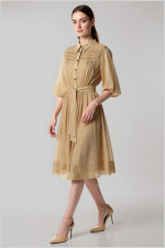 Midi haljina napravljena od prijatnog mrežastog materijala sa prozirnim 3/4 rukavima.