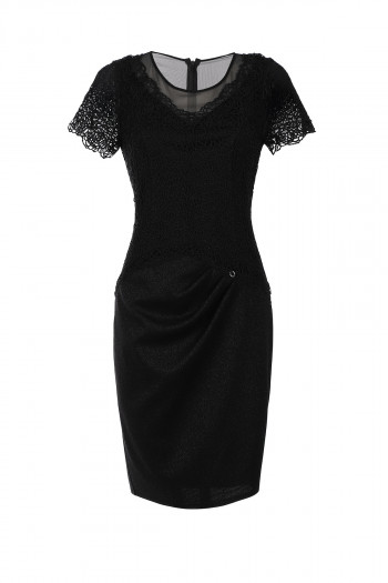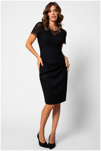 Elegantna crna haljina ukrašena čipkastim detaljima, savršena je za posebne prilike.