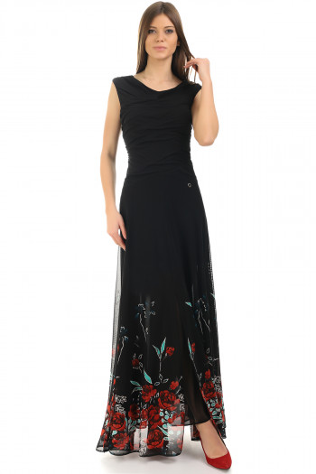 Lepršava duga haljina floralnog dezena sa kratkim rukavima.