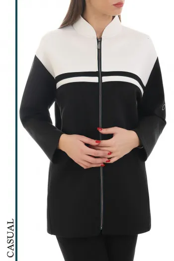 Kratka i moderna jakna sa kontrasnim detaljima i dvopoteznim rajsferšlusom u crnoj boji...