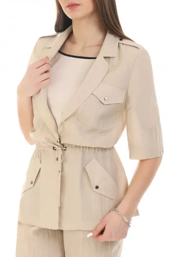 Lagana jakna kratkih rukava od lana u kombinaciji sa viskozom. Ležerni kroj sa kaišem u...