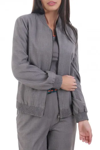 Moderna "bomber" jakna od štofa sitnog kariranog dezena. Njen klasičan kroj pogoduje sv...