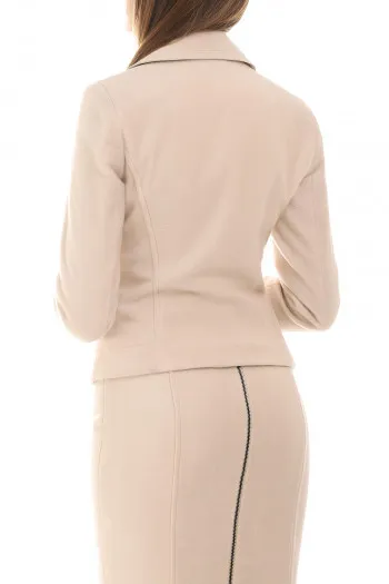 Elegantna jakna u nežnoj bež nijansi sa kaišem na vezivanje – savršen je izbor za prela...