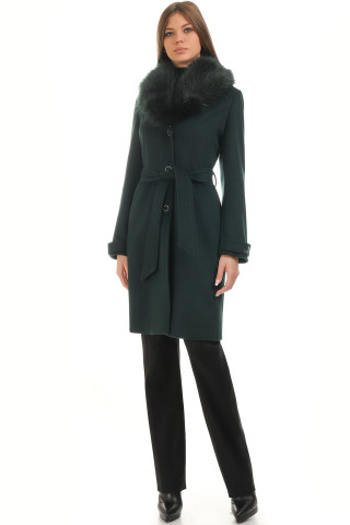 Elegantni petrolej-plavi kaput sa luksuznom krznenom kragnom, prijatnim materijalom i i...