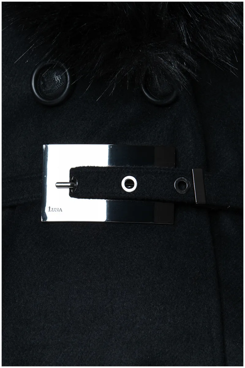 Ženstveni crni kaput sa veštačkim krznom dodaće Vašim outfitima romantičan look.