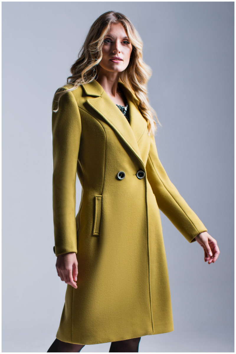 Ženstveni zeleni kaput sa dvorednim kopčanjem idealan je za jesenje dane. Dužine je do kolena i obezbediće Vam dovoljno topline tokom hladnijih dana. Zbog efektnosti nijanse svaka Vaša odevna kombinacija biće primećena.