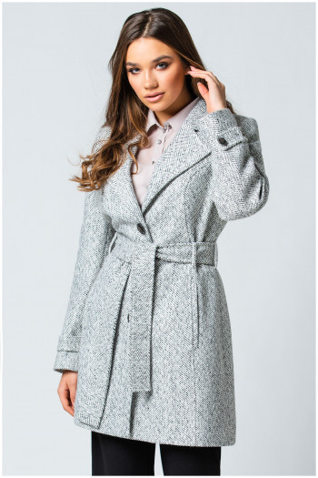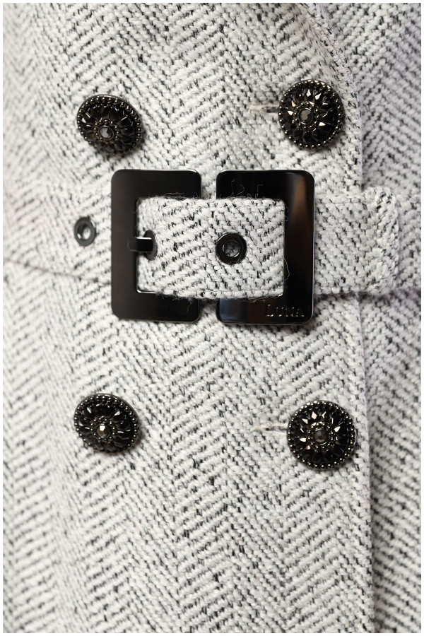 Efektan kaput sa uzorkom riblje kosti I dvorednim kopčanjem. Strukiranog je kroja. Kaiš dodatno naglašava Vaš struk, ali ga možete skinuti i model nositi raskopčan.