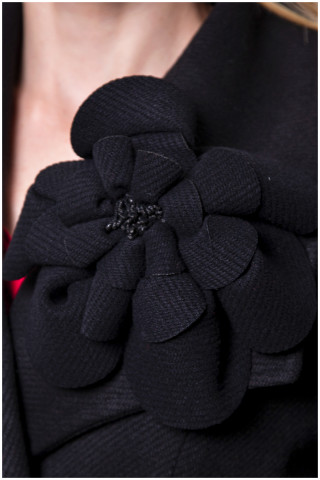Elegantni dugi kaput u crnoj boji sa širokom kragnom i kaišem. Kroj prati liniju tela i pruža sasvim dovoljno prostora da se u njemu osećate veoma komforno. Model poseduje dvoredno kopčanje na preklop.