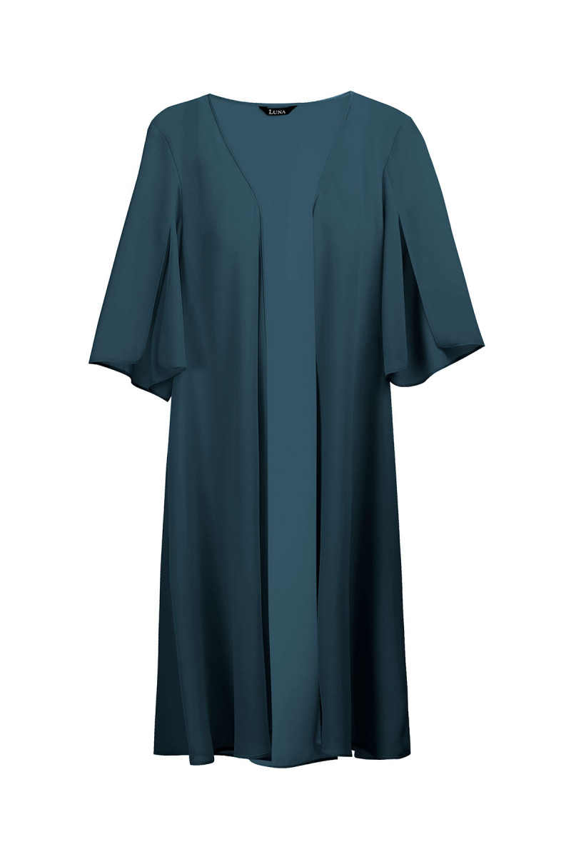 Lagani kardigan sa 3/4 rukavima. Širok kroj čini ga pogodnim za sve tipove građe. Idealan je za kombinovanje sa haljinama iz iste linije.