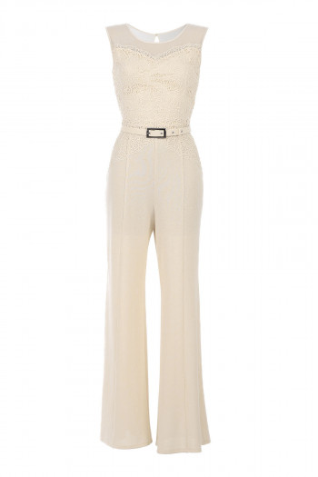 Elegantan kombinezon u nežnoj bež boji, idealan je za posebne prilike.