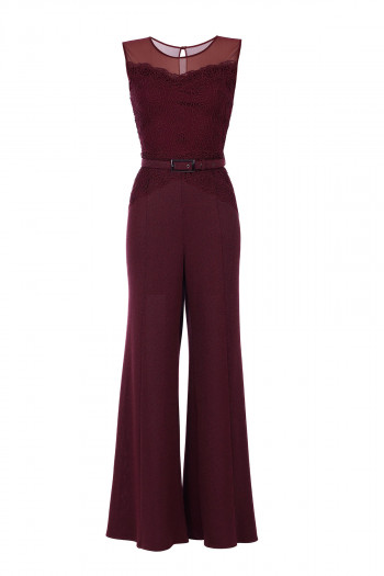 Elegantan bordo kombinezon oplemenjen čipkastim dezenom, idealan je za posebne prilike....