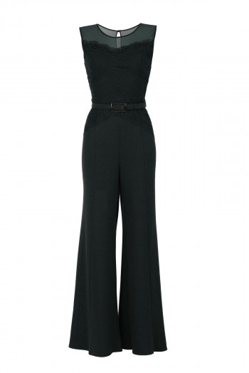 Prefinjen tamnozeleni kombinezon sa čipkanim gornjim delom, diskretnim zakopčavanjem, s...