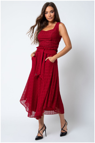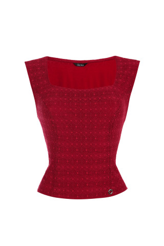 Crveni top kratkih rukava. Model je čipkastog dezena i ostavlja dozu ležernosti. Postava je izrađena od finog materijala, što ga čini veoma prijatnim za nošenje.