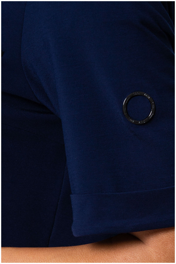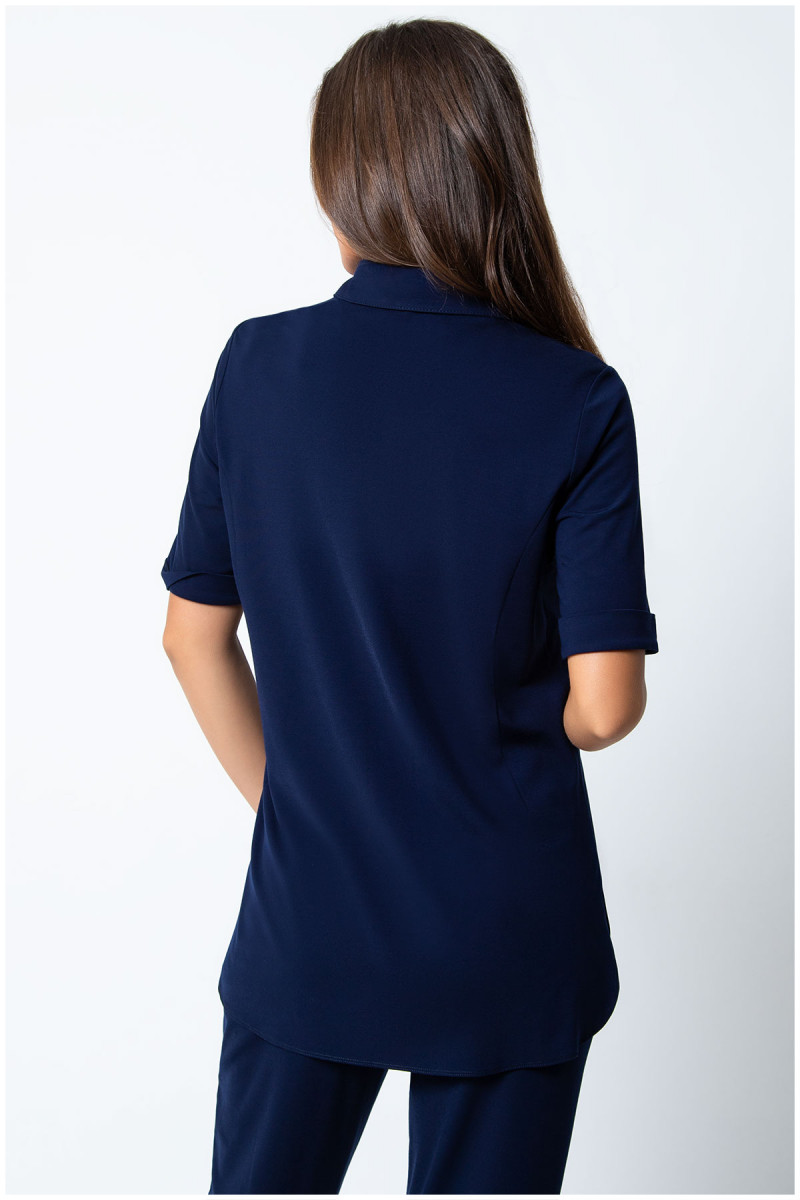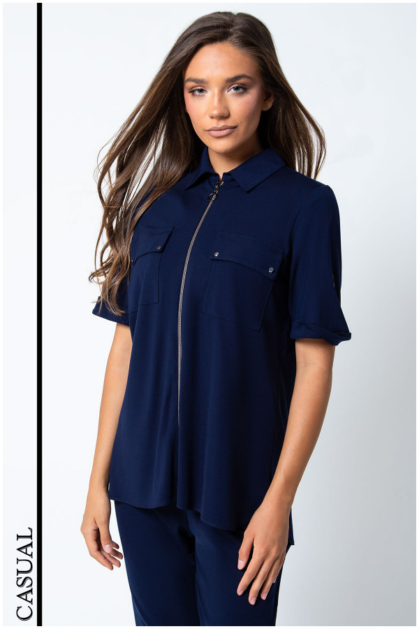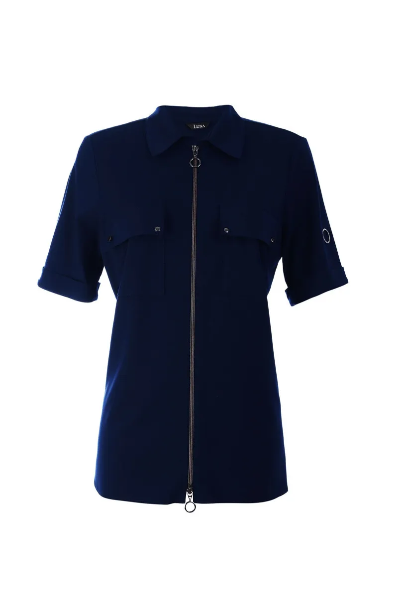Teget viskozna košulja sa kratkim rukavima sa dvopoteznim rajsferšlusom koji Vam omogućava da prilagodite model po svom ukusu.