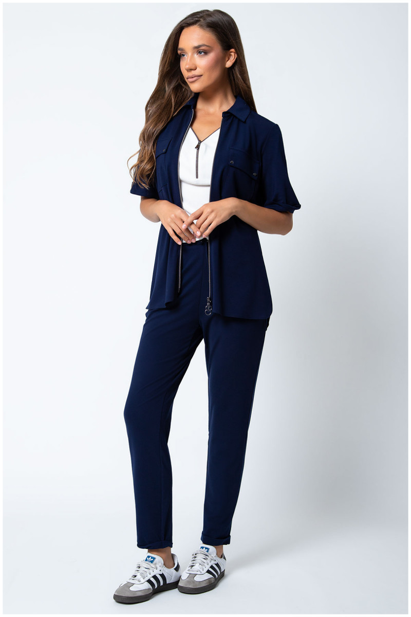 Teget košulja sa kratkim rukavima. Skrojena je od prirodnog materijala koji je prijatan na koži. Dvopotezni rajsferšlus omogućava Vam da prilagodite model po svom ukusu. Jednostavna je za kombinovanje sa Luna Casual pantalonama i donjim delovima trenerke.