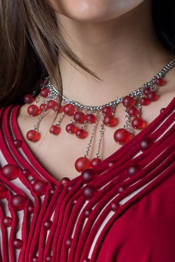 Elegantna ogrlica kojom ćete upotpuniti svaku odevnu kombinaciju i dati joj dozu glamura. Izrađena od metala sa ukrasnim perlama koje vise na tankim lančićima različitih dužina i kreiraju jedinstven oblik. Kopču na ovoj ogrlici možete podesiti i izabrati da li će vam stajati uz sam vrat ili će visiti malo ležernije.