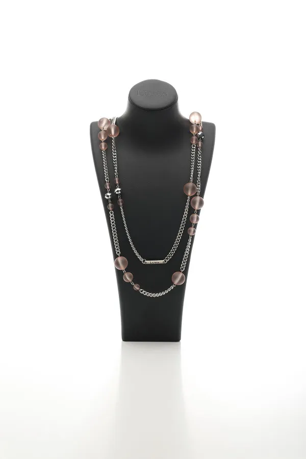 Usmerite Vaš stil u drugom smeru ovom unikatnom dužom ogrlicom. Metalni lanac oplemenjen ukrasnim perlama različitih veličina dozvoljava da ovom ogrlicom kreirate različite dužine. Ogrlicu možete obaviti oko vrata najviše dva puta.